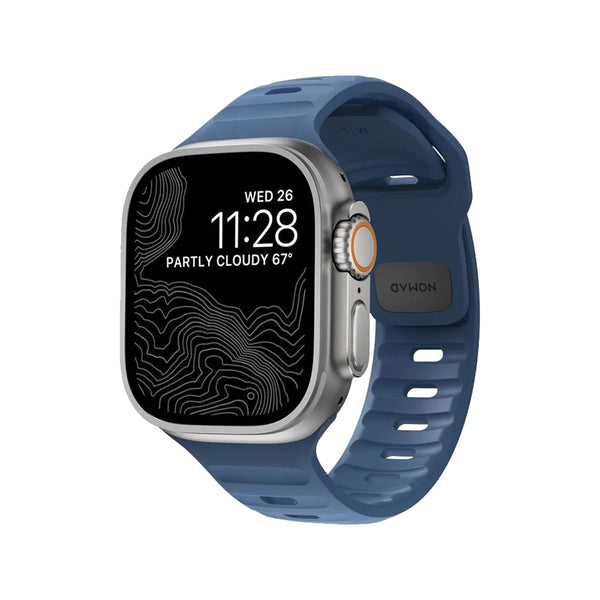 The NOMAD Sport Band in Naval Blue is a high-quality, durable strap designed specifically for Apple Watch models (44-46mm and Ultra). Crafted from rugged, flexible elastomer, this band provides a secure and comfortable fit for all-day wear, making it perfect for workouts, outdoor adventures, and daily use.