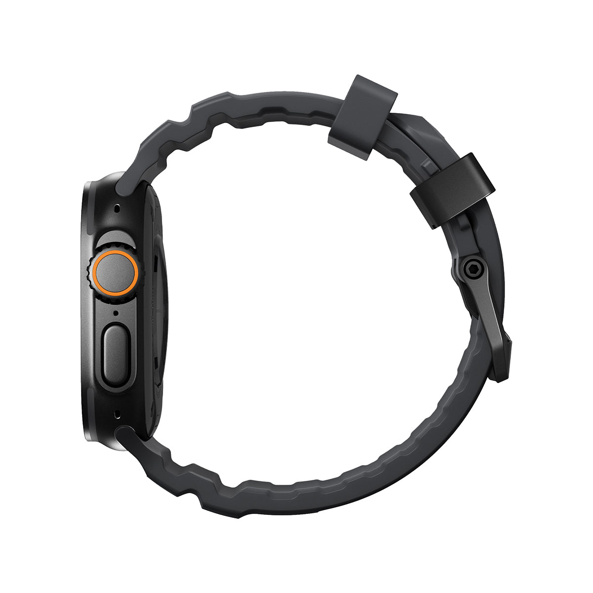 Introducing the Nomad Rocky Point Watch Band, the ultimate companion for your Apple Watch. Whether you’re cycling through rugged terrain, hitting the gym for an intense workout, preparing for your next run or navigating daily challenges, this band is engineered to perform under the most demanding conditions. Meticulously crafted with ultra-durable FKM fluoroelastomer rubber and lightweight titanium hardware, the Rocky Point band combines rugged toughness with sleek, athletic design.